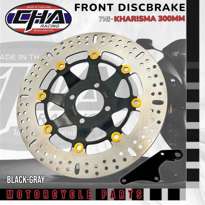 CAKRAM PIRINGAN DISC DEPAN PLUS BREKET KHARISMA SUPRA X 125 SUPRA FIT NEW, REVO OLD DLL UK 300MM FULL CNC - BLACK/RED