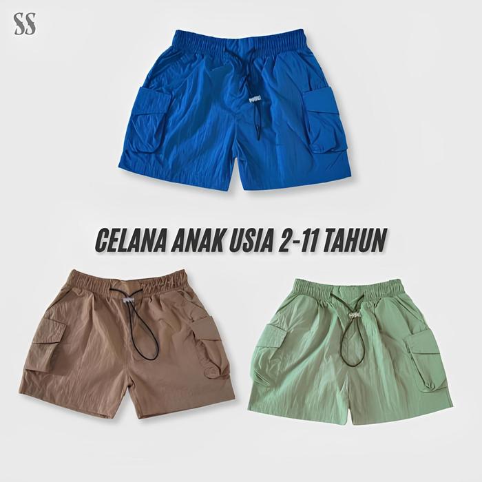 ISI 1&3 PCS CELANA CARGO PENDEK ANAK USIA 1-10 TAHUN MATTERIAL DUSKY CRINKLE PARASUT - ISI 3 PCS, S