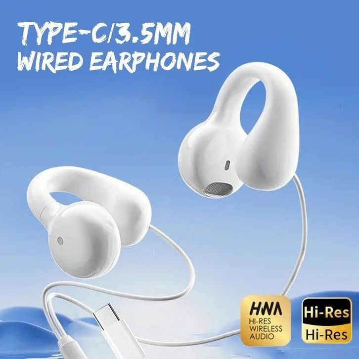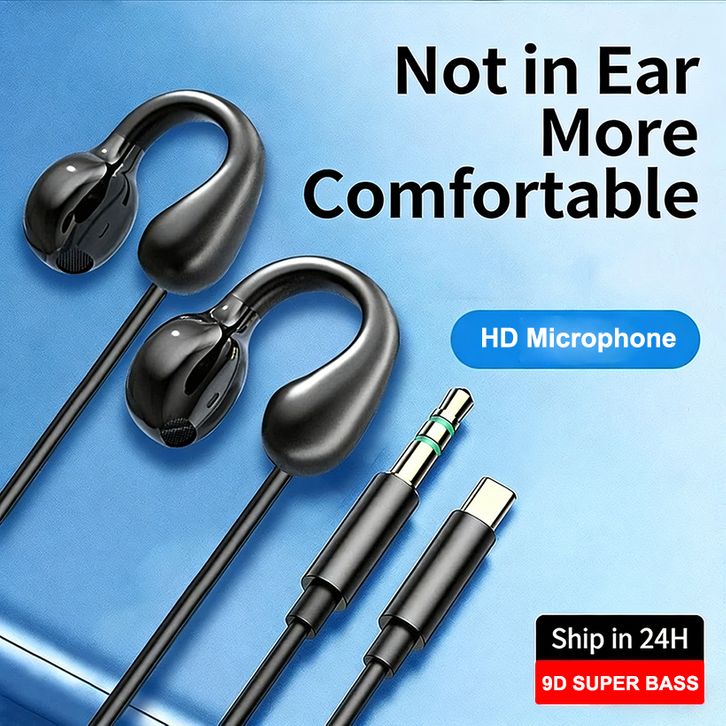 OWS Ear Clip Type C Headset Kabel Open Design Bass Microphone HD Tahan Air & Keringat Olahraga