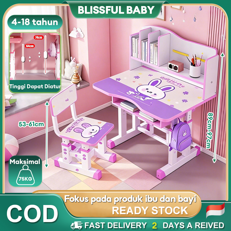 Meja Belajar Anak Gratis Kursi | Ukuran Besar 80cm Tinggi Bisa Diatur + Kait Samping Belajar Nyaman