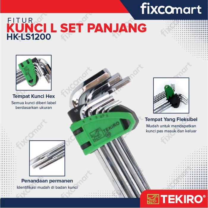 Tekiro Kunci L Set Panjang 8 Pcs (2 - 10 Mm) / Tekiro Hex Key Long Set Mm
