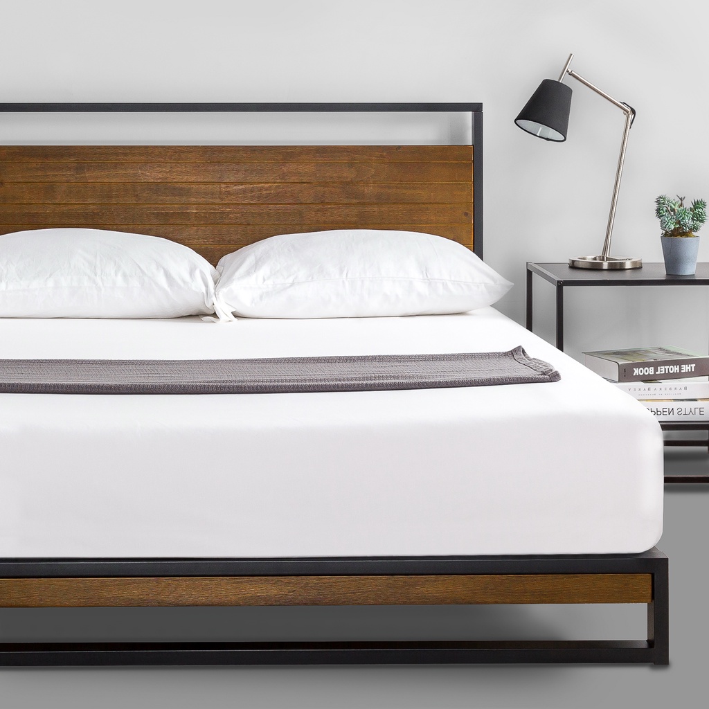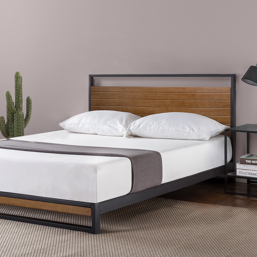 Dipan Tempat Tidur Minimalis Zinus Suzanne Sandaran Ranjang Besi dan Kayu Bed In a Box