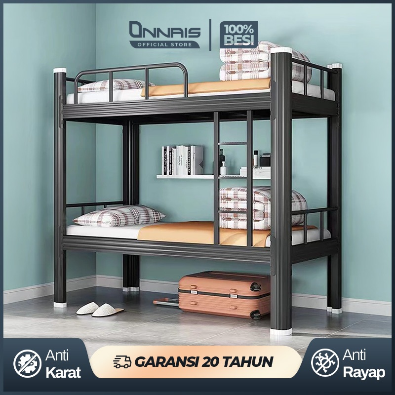 ONNAIS Ranjang Susun Besi 1-2 Tingkat Tempat Tidur Tingkat Minimalis Kuat Anti Karat Dipan Kasur