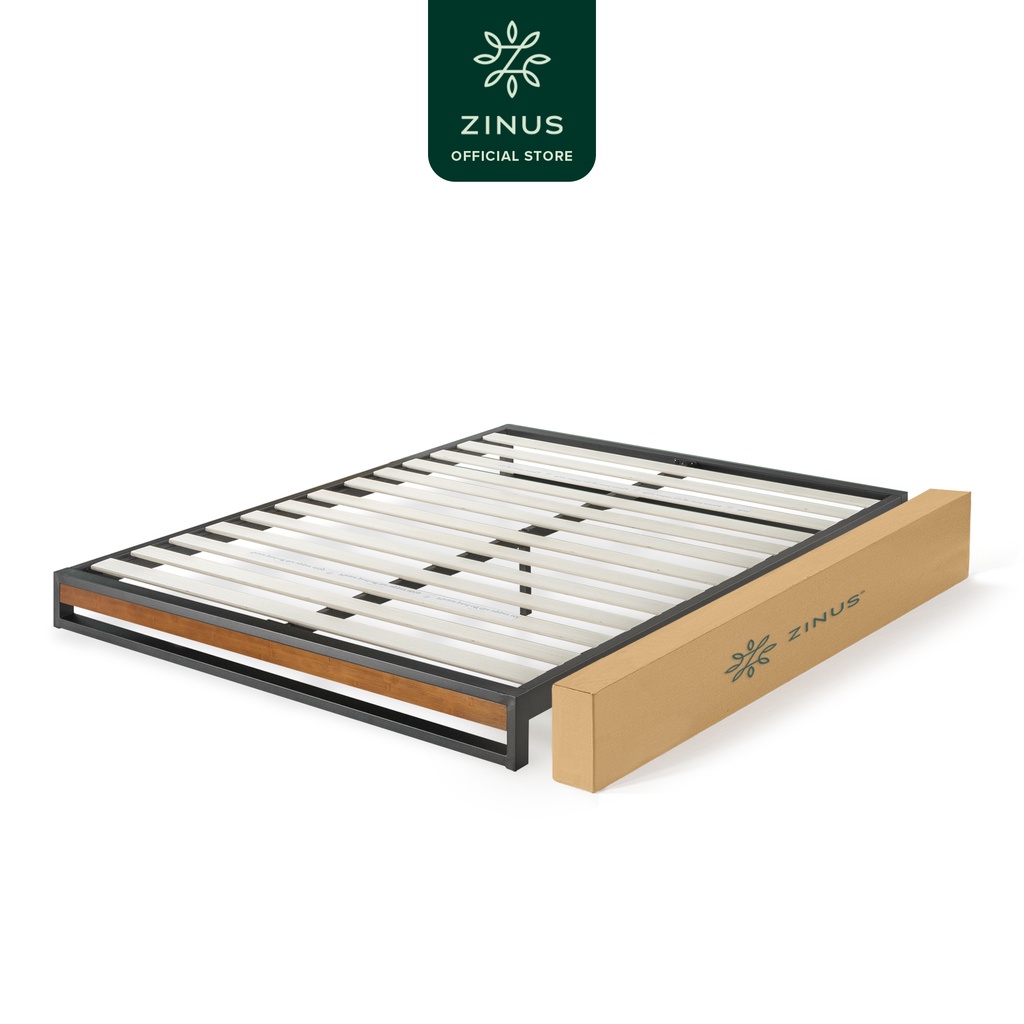 Dipan Tempat Tidur Zinus Suzanne Low Ranjang Besi dan Kayu Design Industrial Bed In a Box