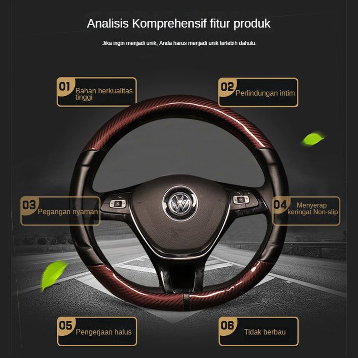Cover Sarung Stir Mobil Universal Dengan Serat Kulit Elastis Racing Ukuran 37 38CM Avanza