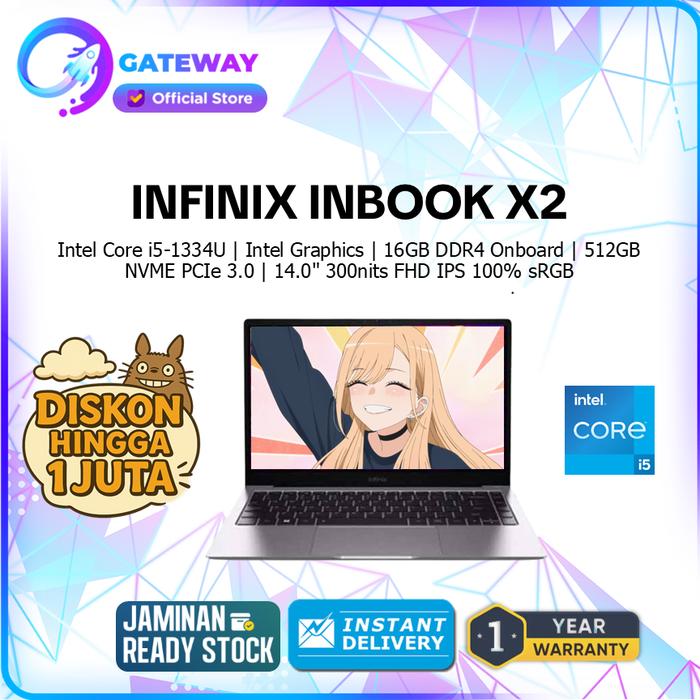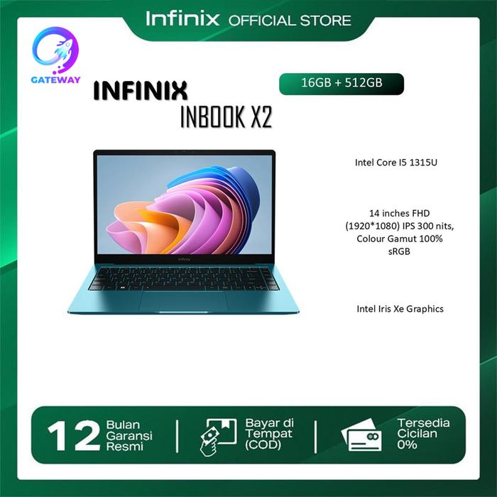 LAPTOP INFINIX INBOOK X2 2025 CORE I5 1334 16GB 512GB SSD WIN11 14.0" FHD IPS - 100 PERSEN SRGB - 1,24KG RINGAN - NORMAL, I3-1315U | 8GB 256GB