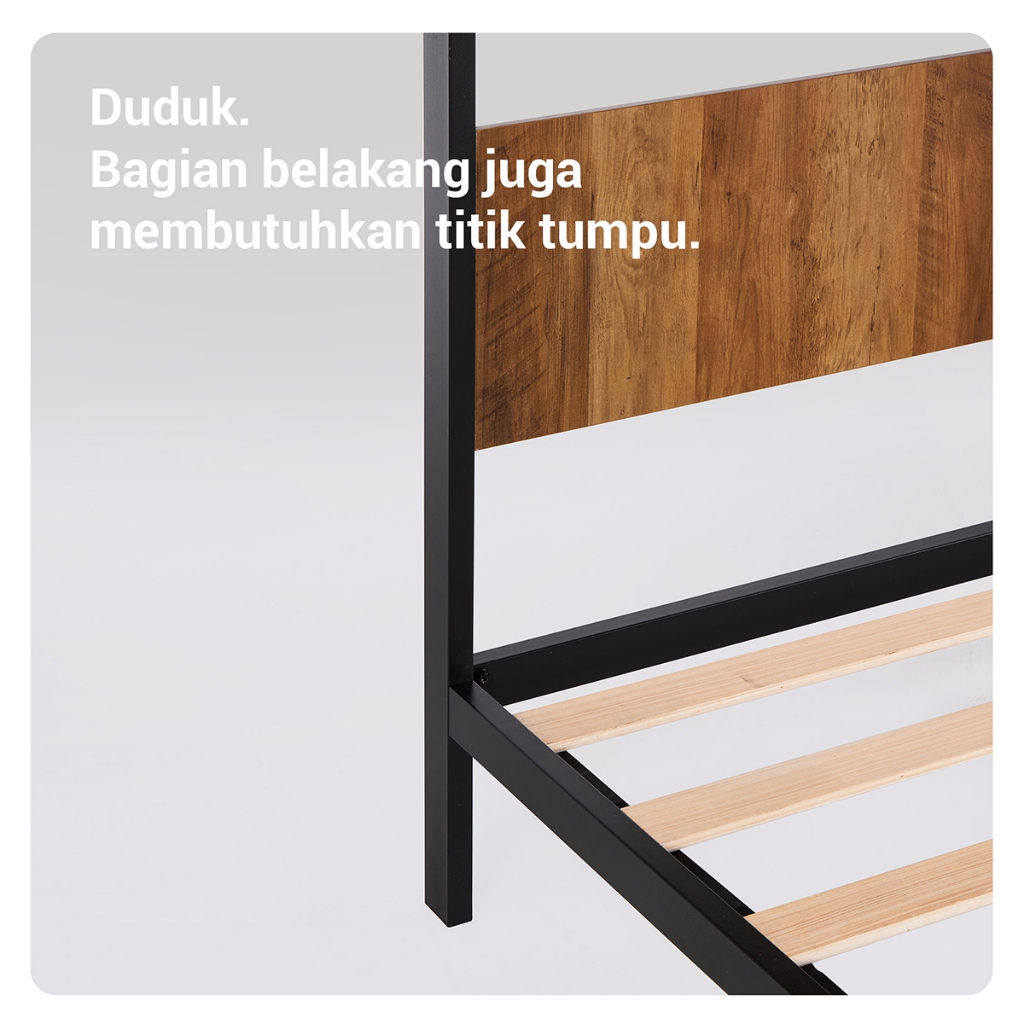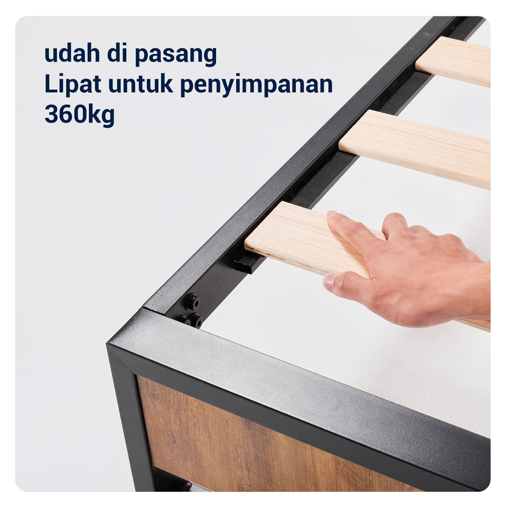 Avenco Classicbed Series Dipan Tempat Tidur Ranjang Besi dan Kayu Kokoh Anti Bising Retro Walnut Penyimpanan Bed