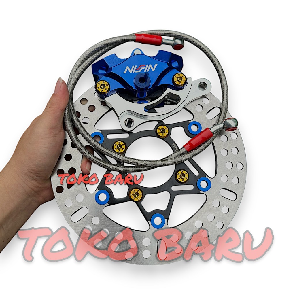1PAKET KALIPER 2PISTON + PIRINGAN DISC 220MM + SELANG REM 90CM + BAUT DISC + BREKET 220MM BEAT VARIO SCOOPY MIO SMILE