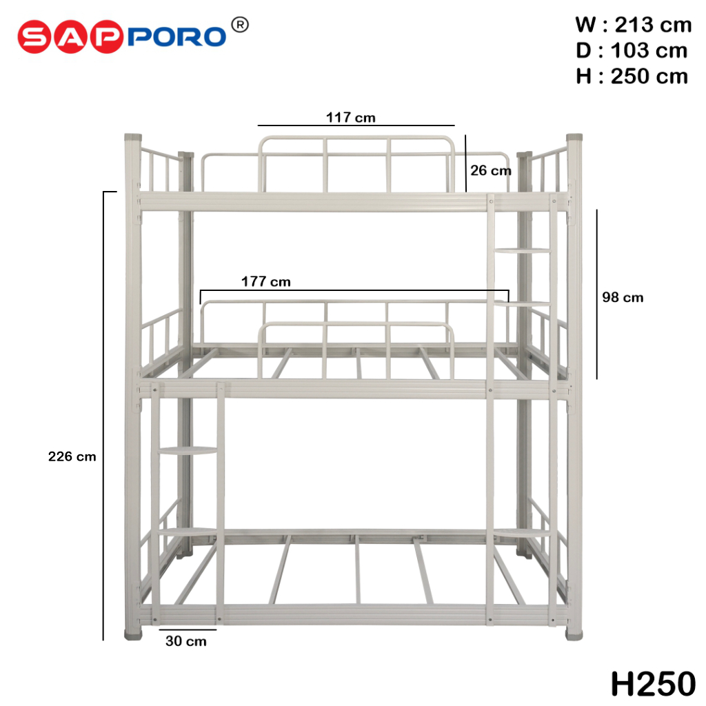SAPPORO ARIDA - Ranjang Susun Besi 3 Tingkat | Divan Susun 3 Tingkat