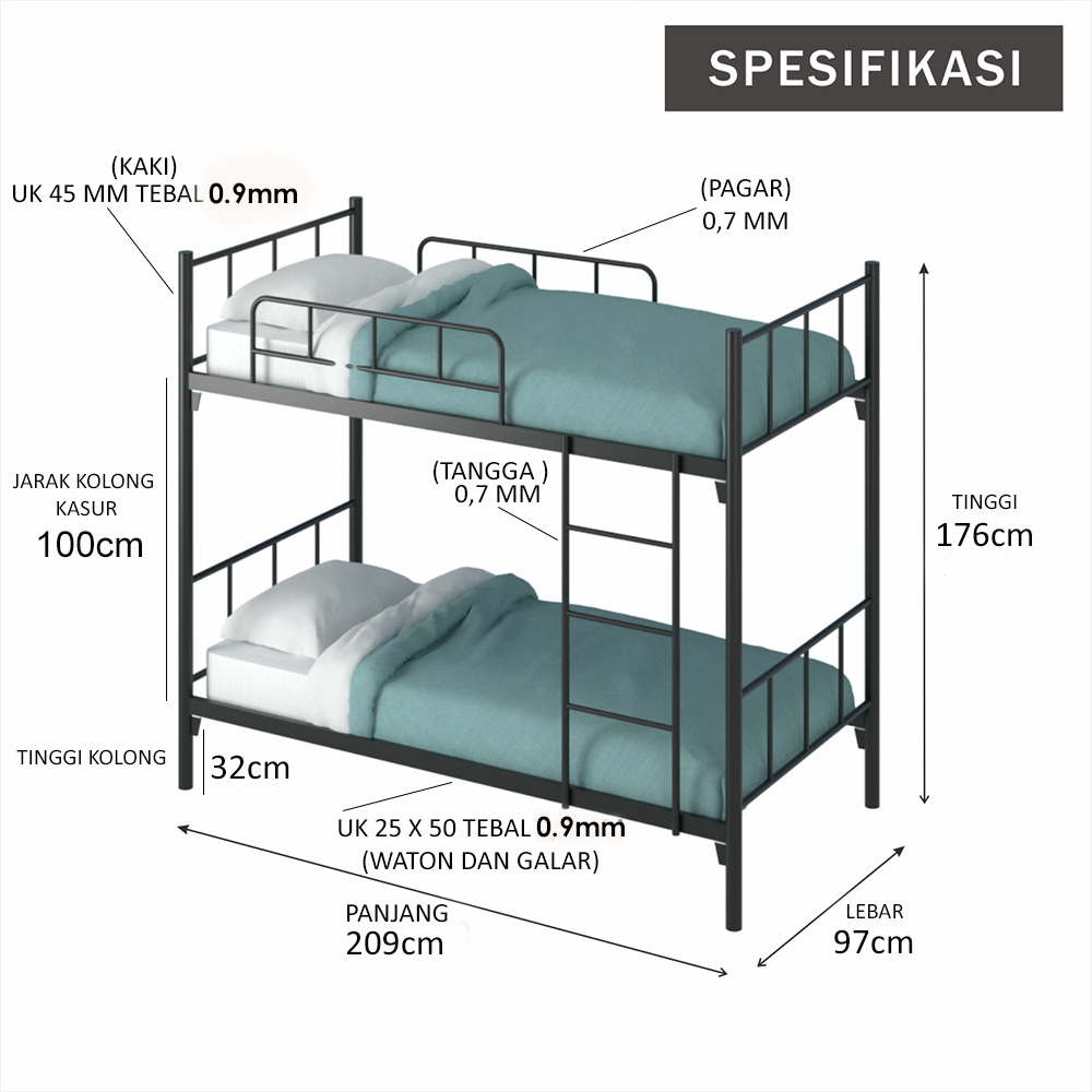 Ranjang Tingkat Besi | Bunk Bed Susun Minimalis |Dipan Kasur Tingkat CTR2