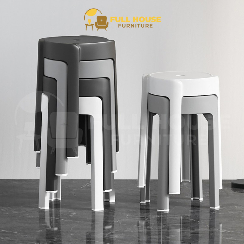 Homedoki Bath-Kursi Bulat Minimalis Plastik Dapat Ditumpuk