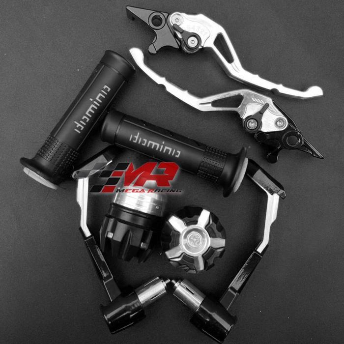PAKET VARIASI MOTOR 4 ITEM - HANDLE JARUM CNC + PROGUARD ROBOT D1 + JALU AS RODA DEPAN + HANDGRIP SISIK KARET EMPUK UNIV
