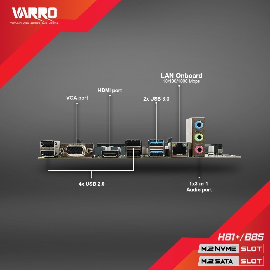 Paket New Motherboard Varro H81+/B85 DDR3 Core i3-4170/ i5 4590 / i7-4770 Socket 1150 HDMI NVME Sata 3.0 Gen 4/5 - Mainb
