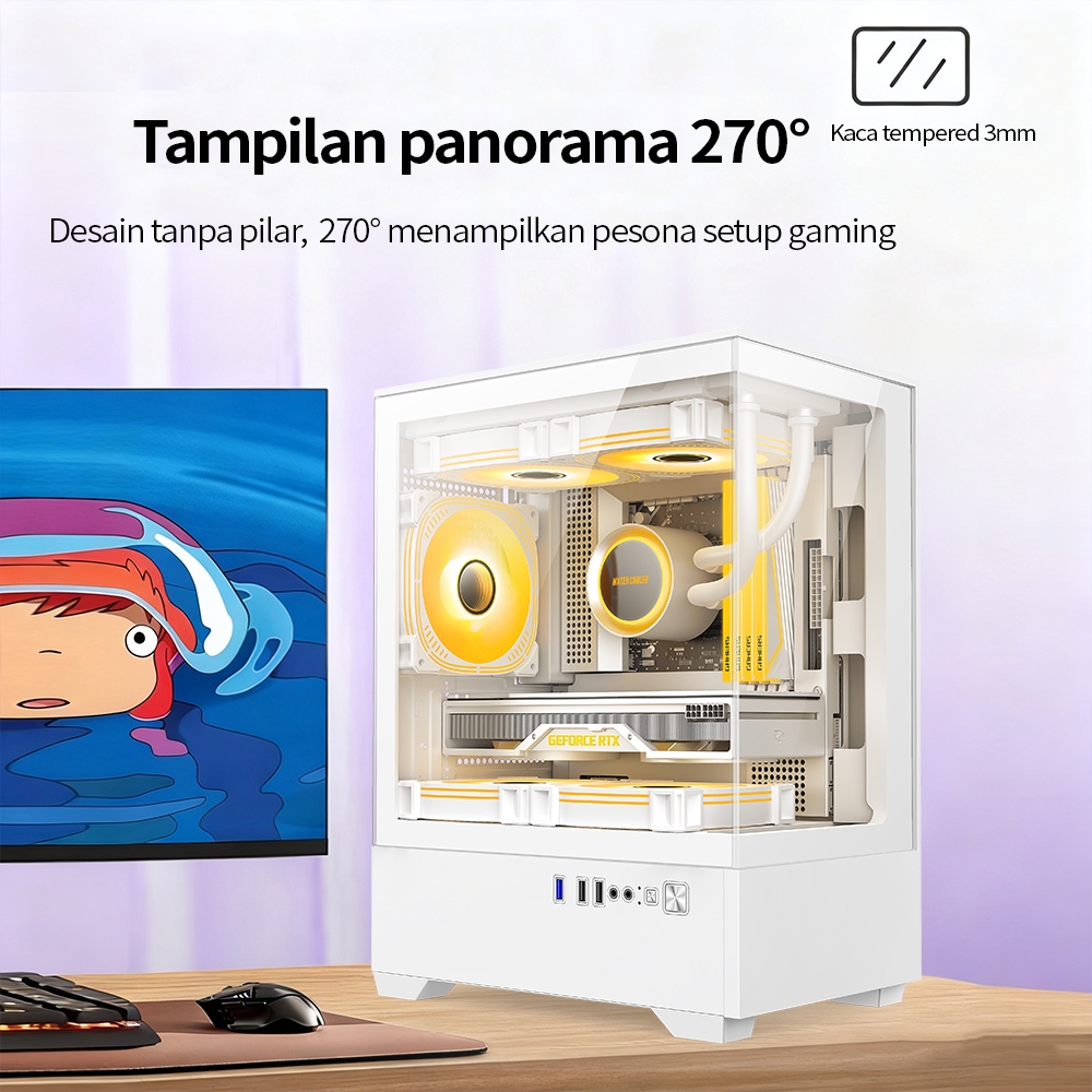 JUTU Casing Komputer Desktop Ruang Pemandangan Laut Baru Casing Utama Transparan Sisi Permainan Komputer Desktop Tampak