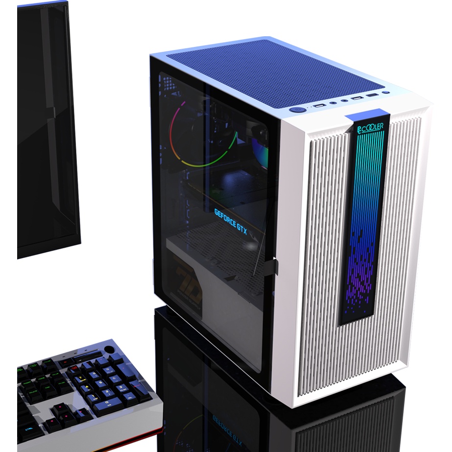 PCCooler Platinum LM200 Black White | Casing CPU Komputer Gaming Micro ATX Tempered Glass Hitam Putih