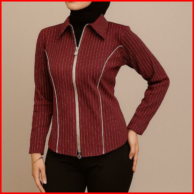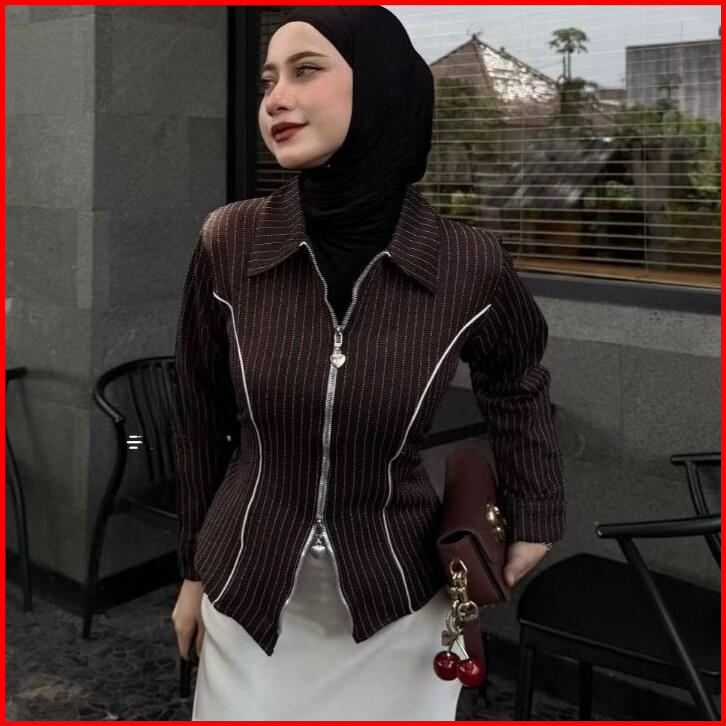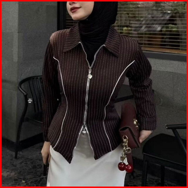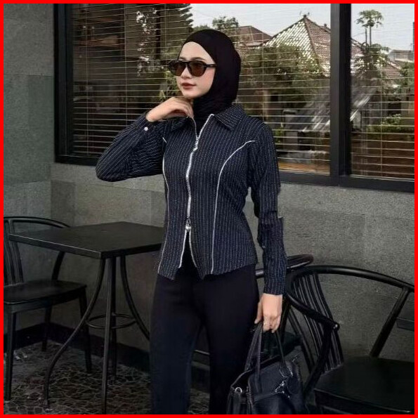 Mf - Dyffa Zipper Shirt Salur Fitted Korea Style