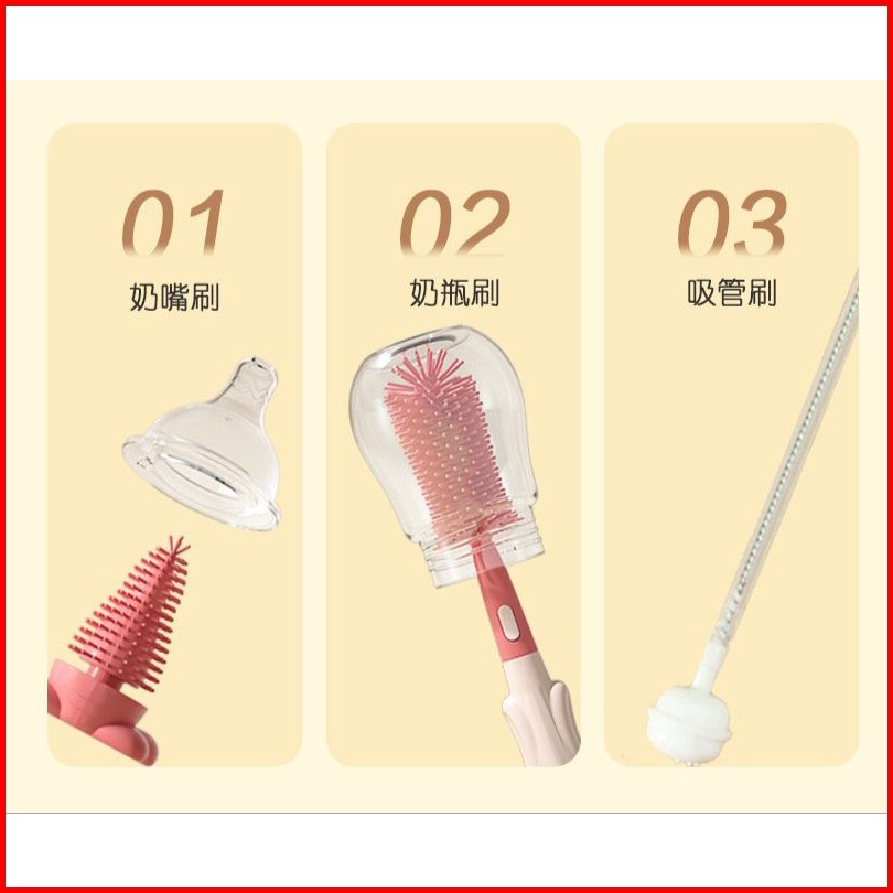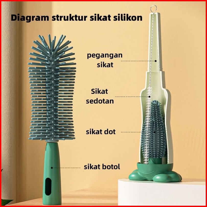 Sby Sikat Botol Silikon Penyikat Pembersih Penyuci Botol Susu Bayi Dapat Memutar 360 Derajat Cuci Bersih Dot Baby Set 3