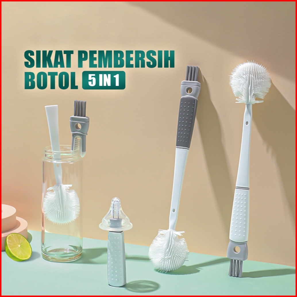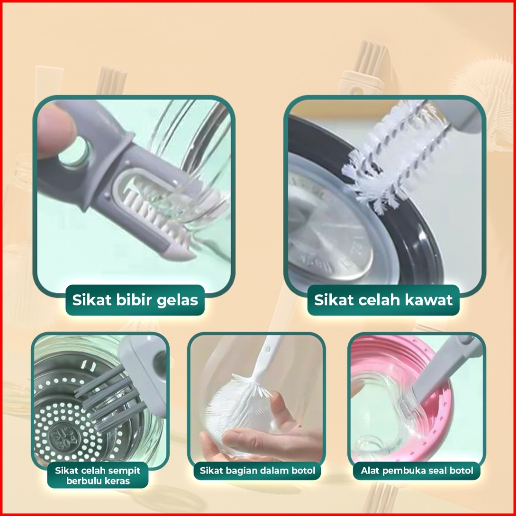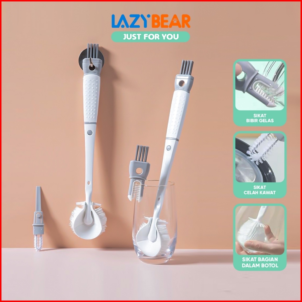Lazy Bear Set Sikat Pembersih Botol 5in1 S38a Serbaguna Alat Pembersih Gelas Tumbler Cangkir Botol Susu Bayi