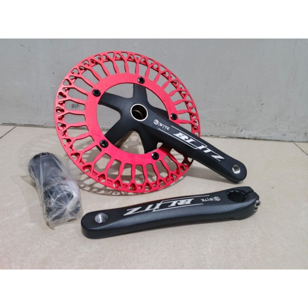 Gir Gear Crank HOLOTECH 53T MERAH Alloy SYTE Single 1 susun Crank Holotech Sepeda 1 susun 53T Gir Sepeda Lipat Minion Fiksi MTB Chrome As Kotak Gowesan Sepeda MTB