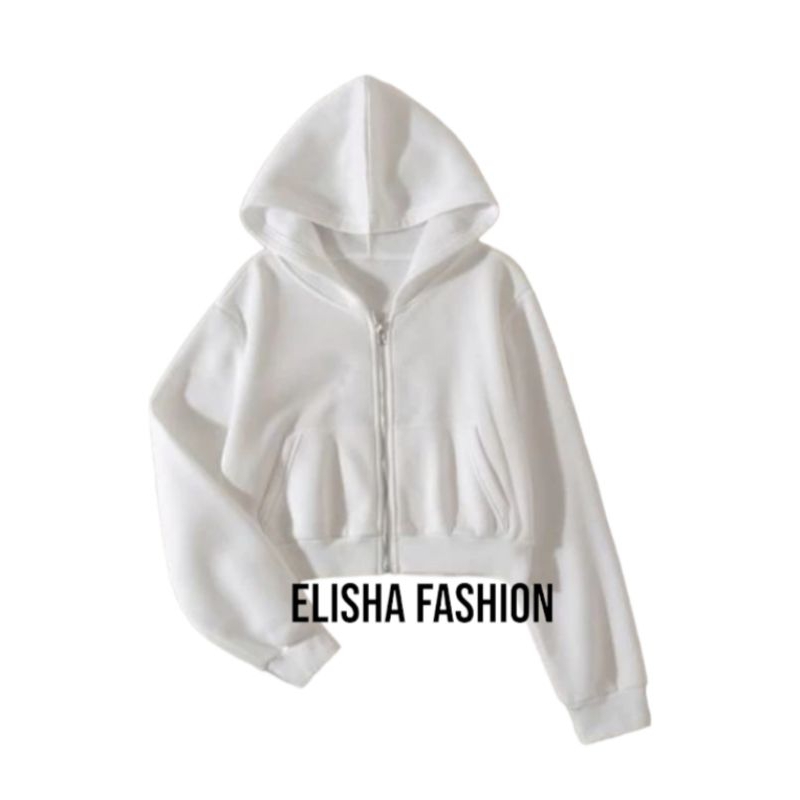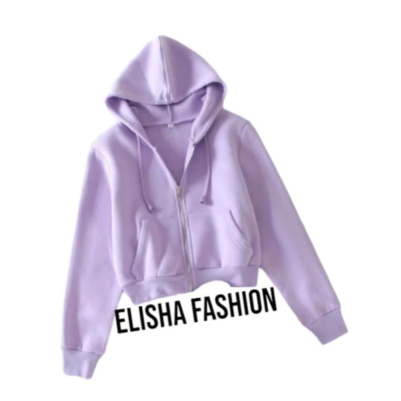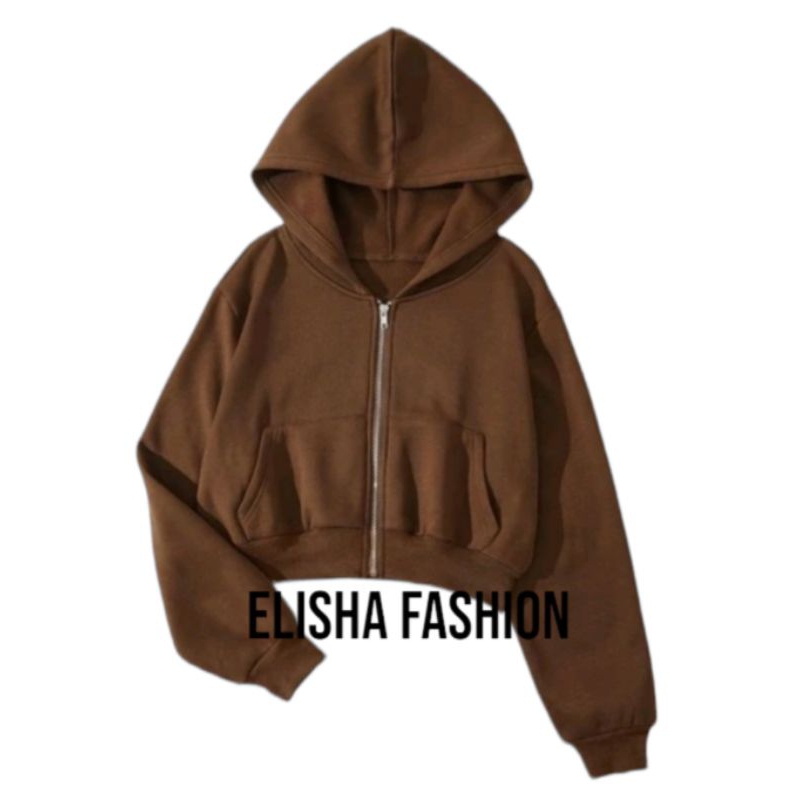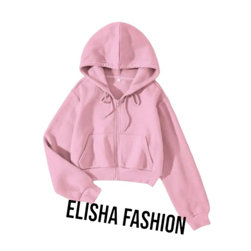 Jaket Sweater Crop Hoodie Wanita Kekinian Plecce