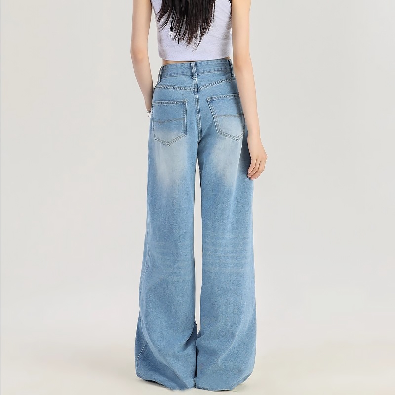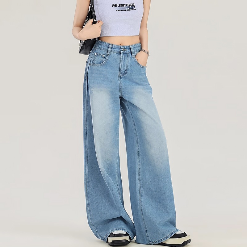 Jumbo S-5Xl Jeans Ukuran Besar Jeans Biru Wanita Jeans Longgar Kaki Lebar Jeans Pinggang Tinggi Premium