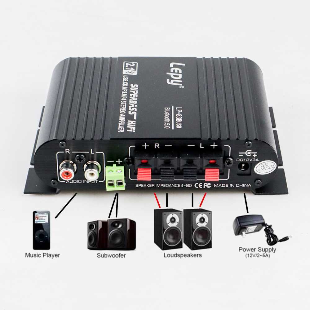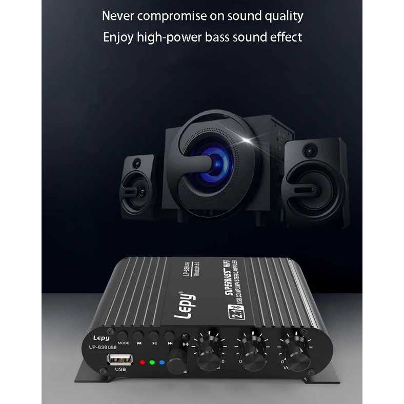Lepy Audio Amplifier Bluetooth USB HiFi Sound Booster with Remote - LP-838USB + BONUS ADAPTOR