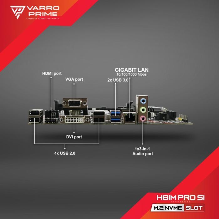 Paket New Motherboard Varro H81M PRO S1 DDR3 Core i3-4170/ i5 4590 / i7-4770 Socket 1150 HDMI NVME Sata 3.0 Gen 4/5 + Fr