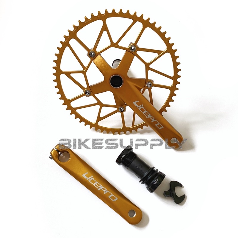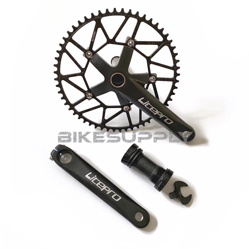 Crankset Sepeda Merk Litepro + BB Hollowtech 2 HT2 Model Jaring 50T 52T 54T 56T 58T 60T Warna Hitam Merah Biru Rainbow Pelangi Crank Set Piringan Full Alloy