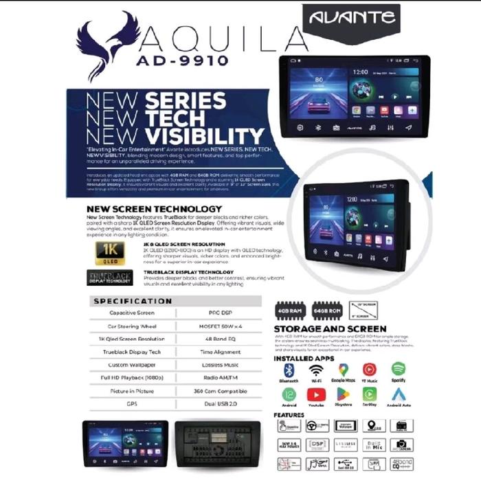 HEADUNIT AVANTE ANDROID APPLE CAR PLAY AQUILA 4/64GB, 9/10 INCH QLED - 9 INCHI