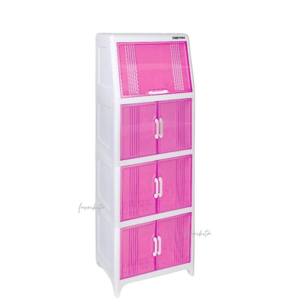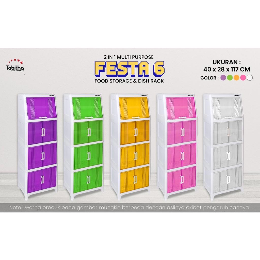 MRASIA Rak Piring Tertutup Serbaguna Festa 2 in 1 Susun 4 Food Storage dengan Peniris Air dan Storage Piring 5 Pcs Tabit