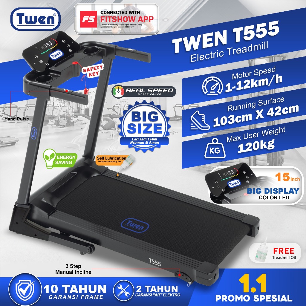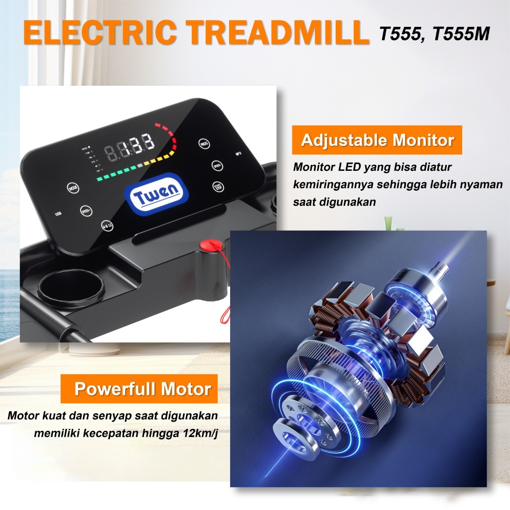 TWEN T555 T555M series Treadmill Listrik Treadmill Portable Treadmill Multifungsi Treadmil Lipat Treadmill Electric Low Watt Alat Olahraga
