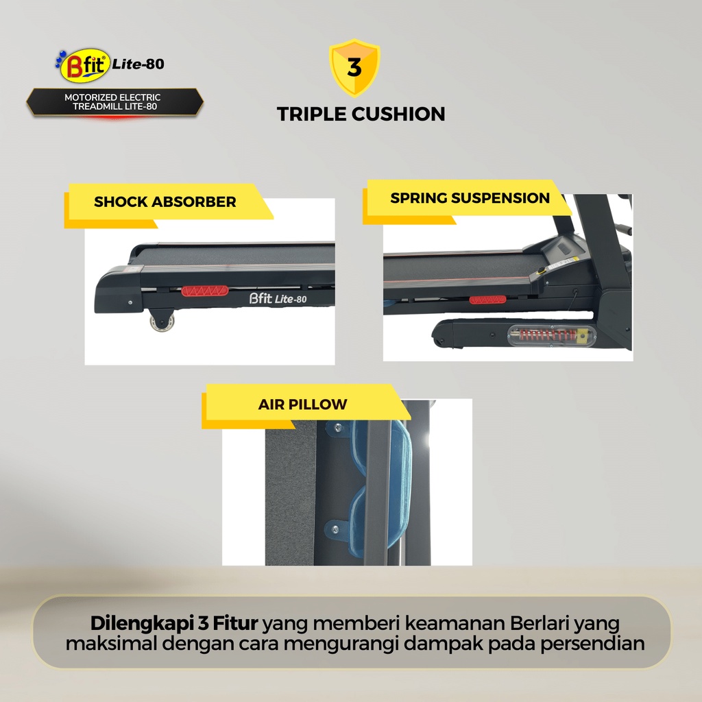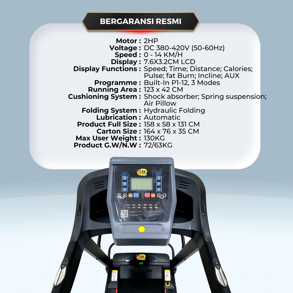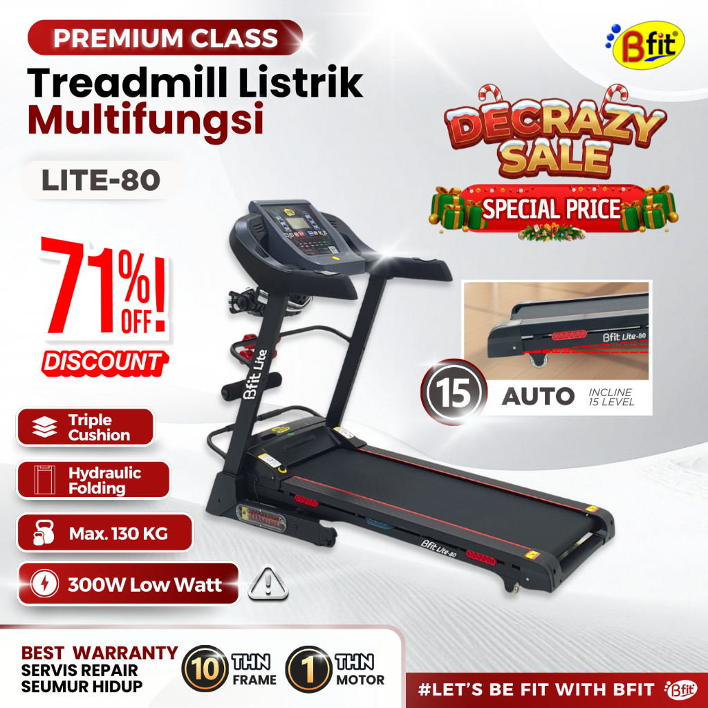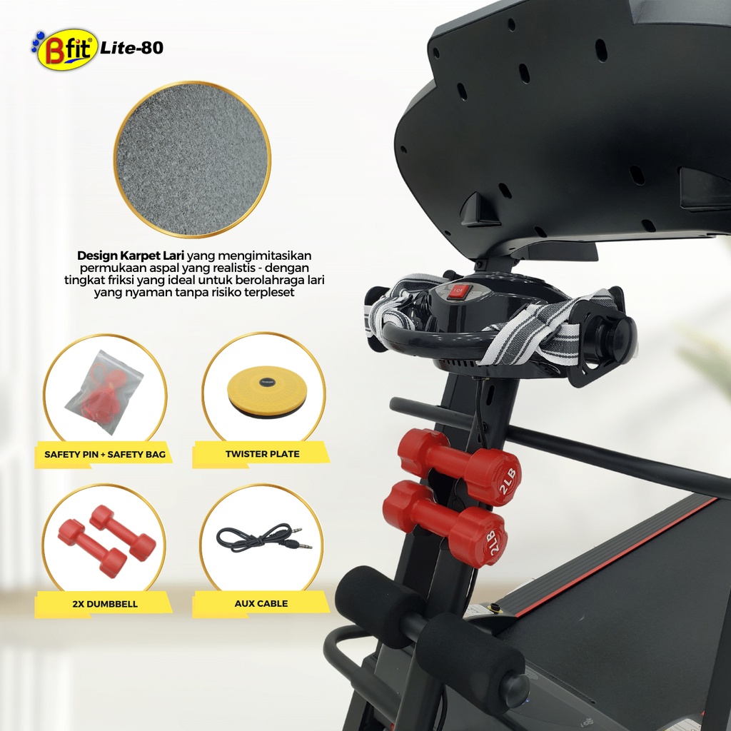 Treadmill Elektrik BFIT LITE-80 Auto Incline Multifungsi Listrik Lipat Portable Low Watt Fitness Gym