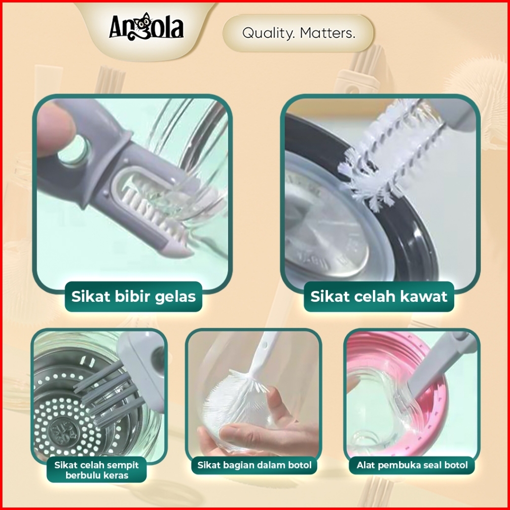 Angola Set Sikat Pembersih Botol 5in1 S38a Serbaguna Alat Pembersih Gelas Tumbler Cangkir Botol Susu Bayi