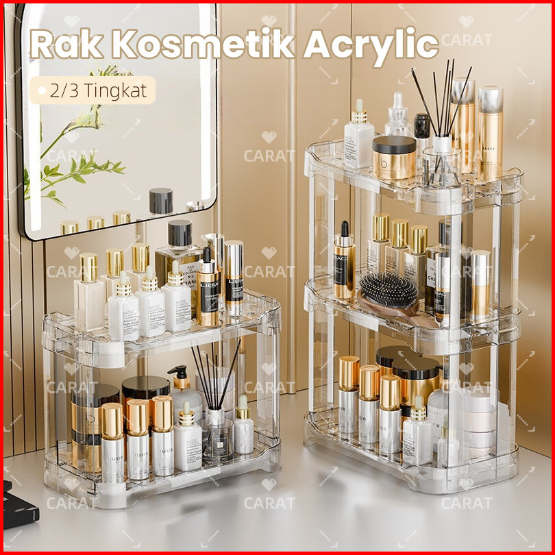 Carat Rak Acrylic Kosmetik Rak Makeup Rak Organizer Kosmetik Rak Kosmetik Acrylic 3 Tingkat Serbaguna Rak Penyimpanan Mu