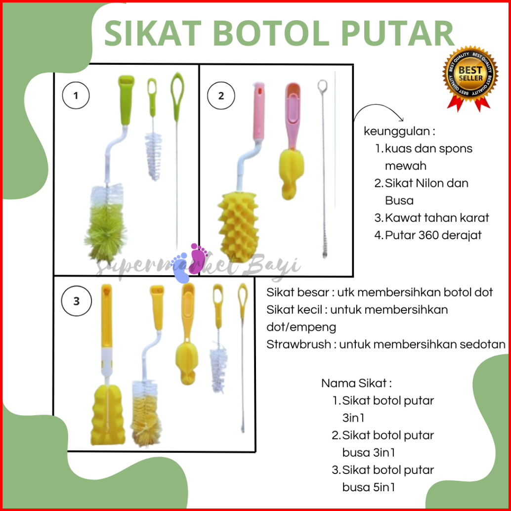 Sikat Botol Putar Busa 5 In 1 30 X 7 Cm Sikat Pembersih Botol Susu Bayi Sikat Botol Susu Bayi Sikat Botol Sponge Cuci Do