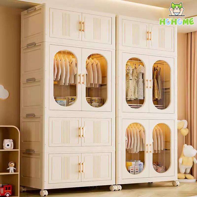 HOhome Besar Lemari Pakaian Plastik GANTUNG Lemari Plastik Susun Lemari Baju Plastik Lipat ada roda