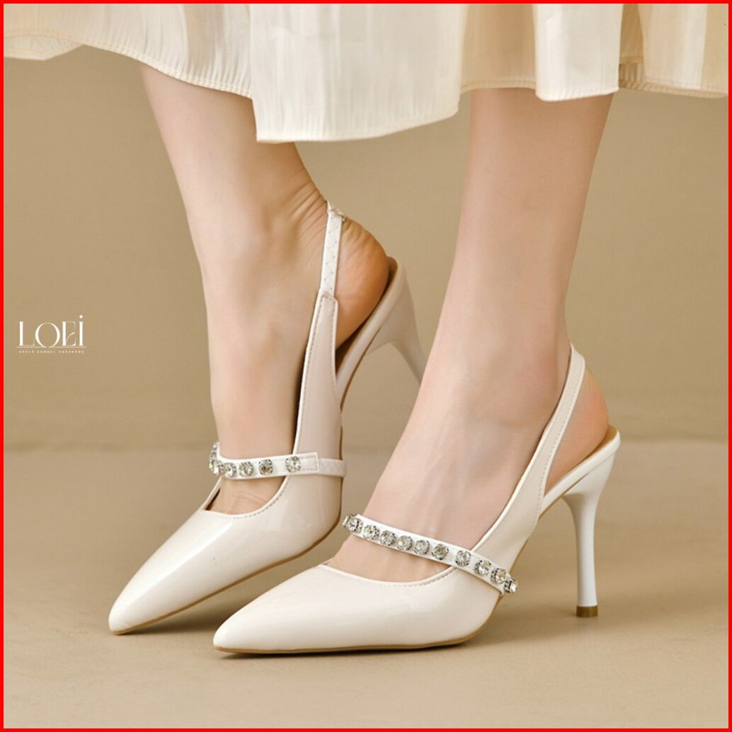 Loei Sharon Glamour Slingback Heels Woman Stylish 10 Cm Sepatu Hak Tinggi Pesta Wanita Elegant Mewah 9636
