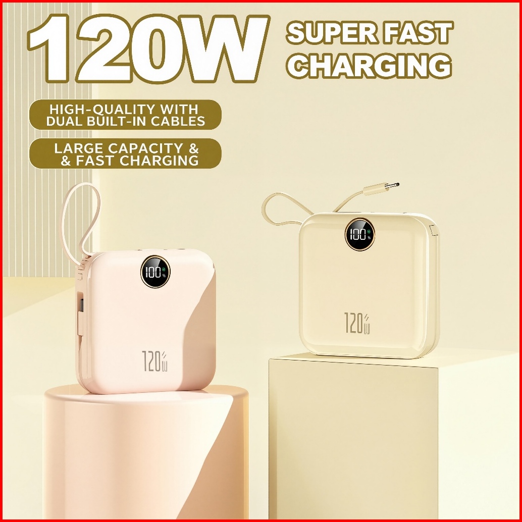 Powerbank Mini Super Fast Charging 120w Power Bank 20000mah Built In Cable Type C Lightning For Iphone Android