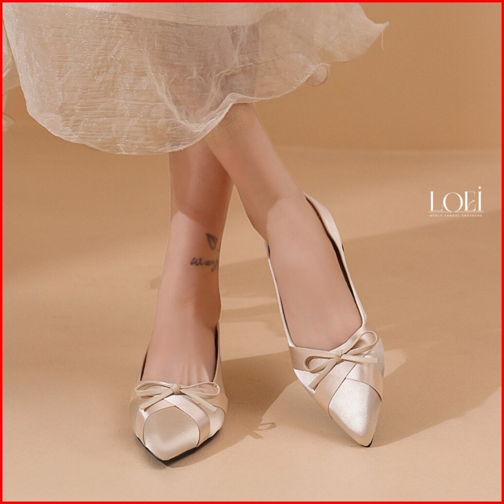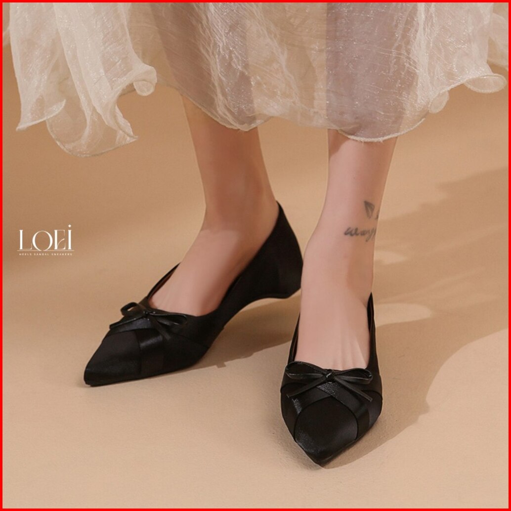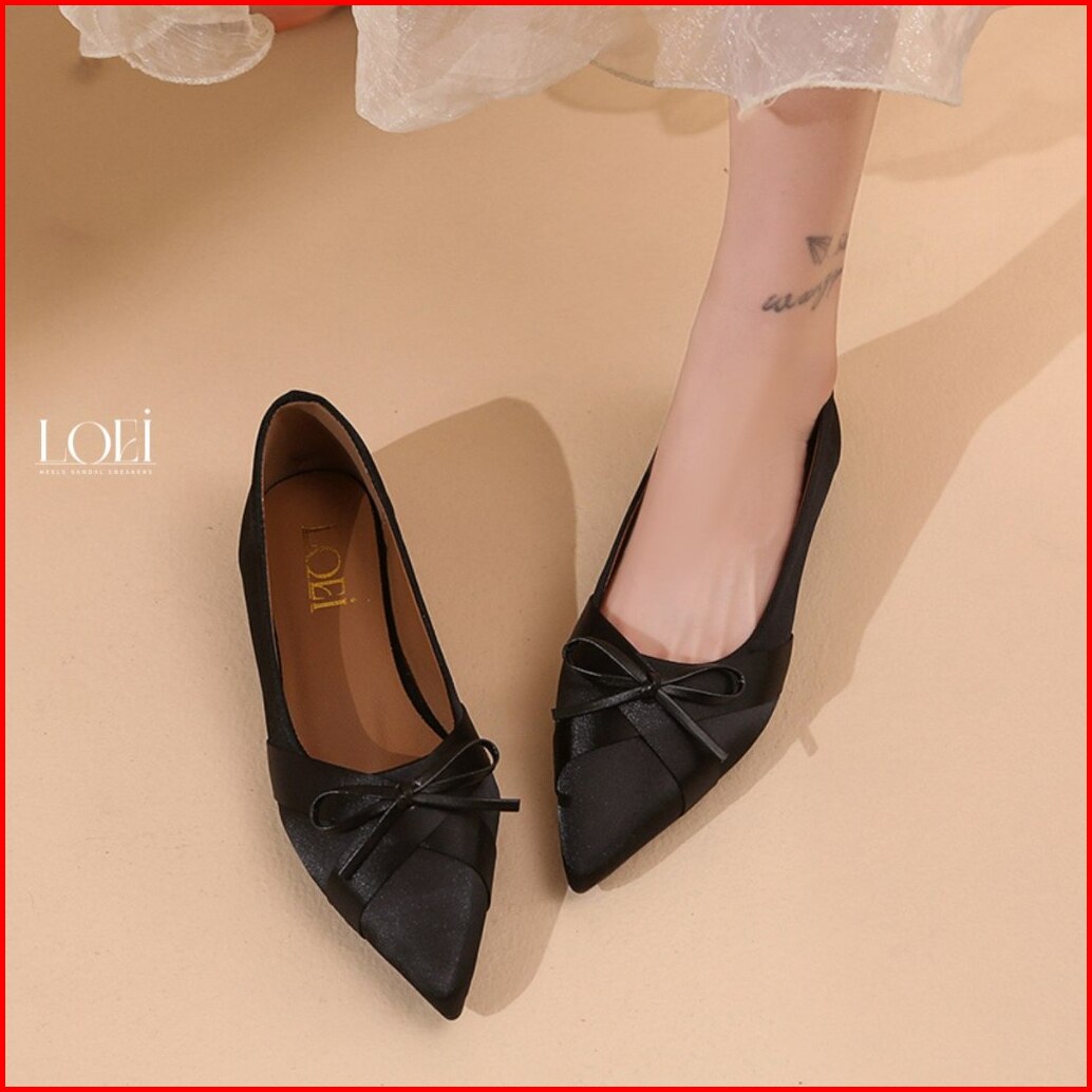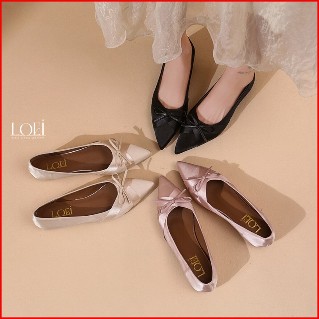 Loei Jihae Satin Flatshoes Pita Wanita Elegan Sepatu Flat Lancip Cantik 4237