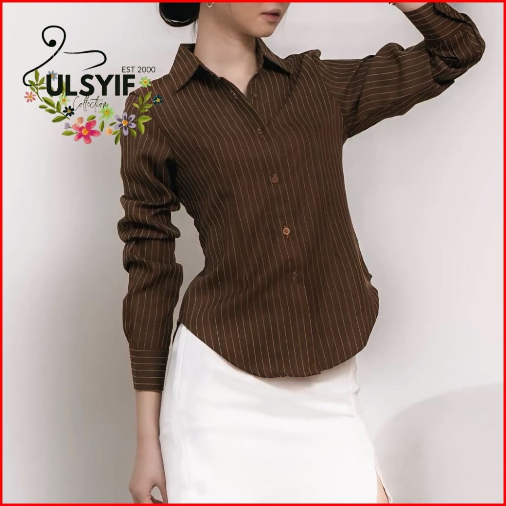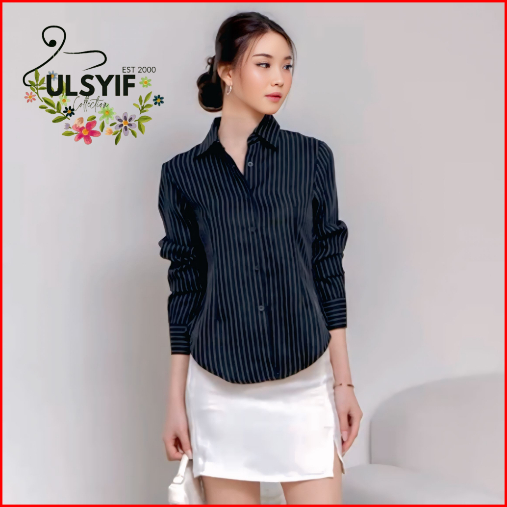 Luna Stripe Kemeja Salur Slimfit Fitted - Kemeja Wanita Salur Smiwool