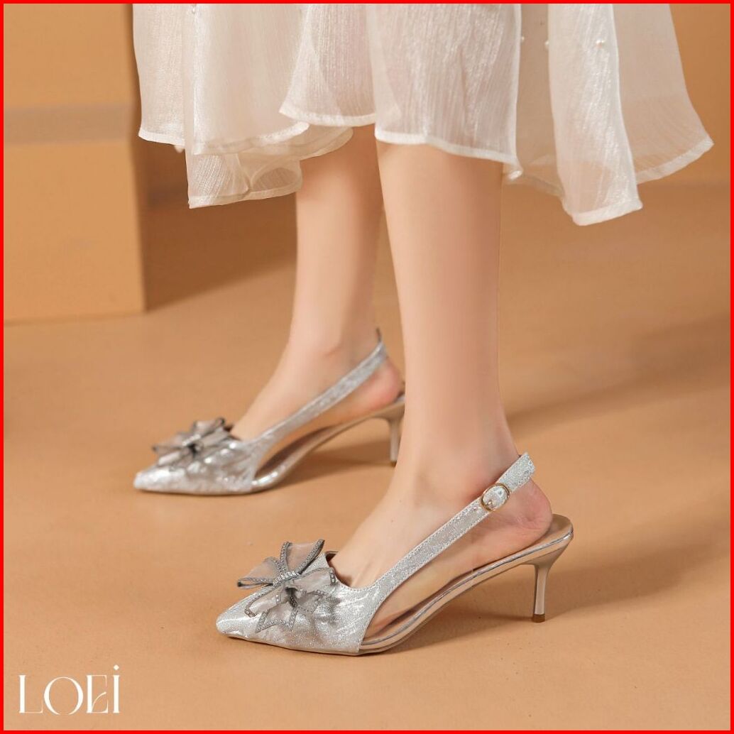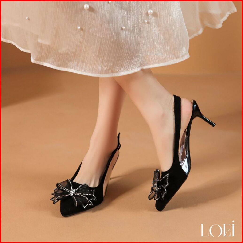 Loei Betrice Heels 5 Cm Sepatu Hak Pita Kupu2 Elegant Pesta Kekinian Wanita Sling Back 4411