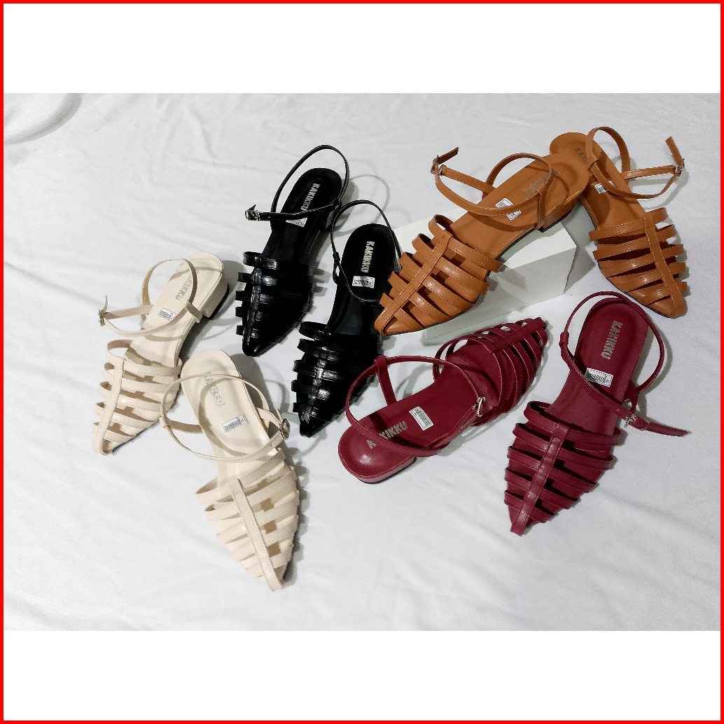 Sandal Wanita Premium Hak Tahu Tali Keronjo Ujung Lancip New Fashion Wanita