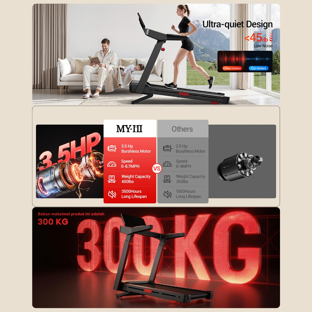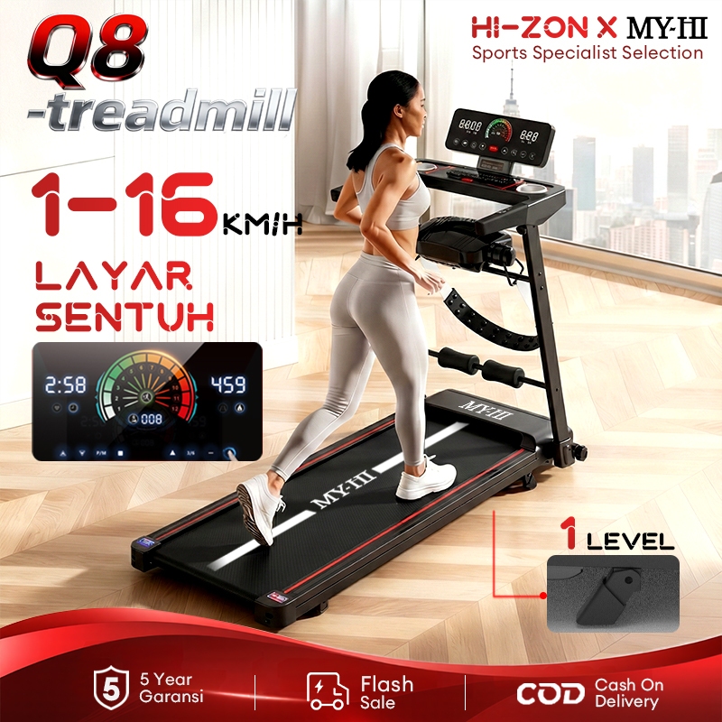 HI-ZON / treadmill electric low watt Treadmill alat olahraga di rumah Q8/Q8Y Treadmill Auto Incline