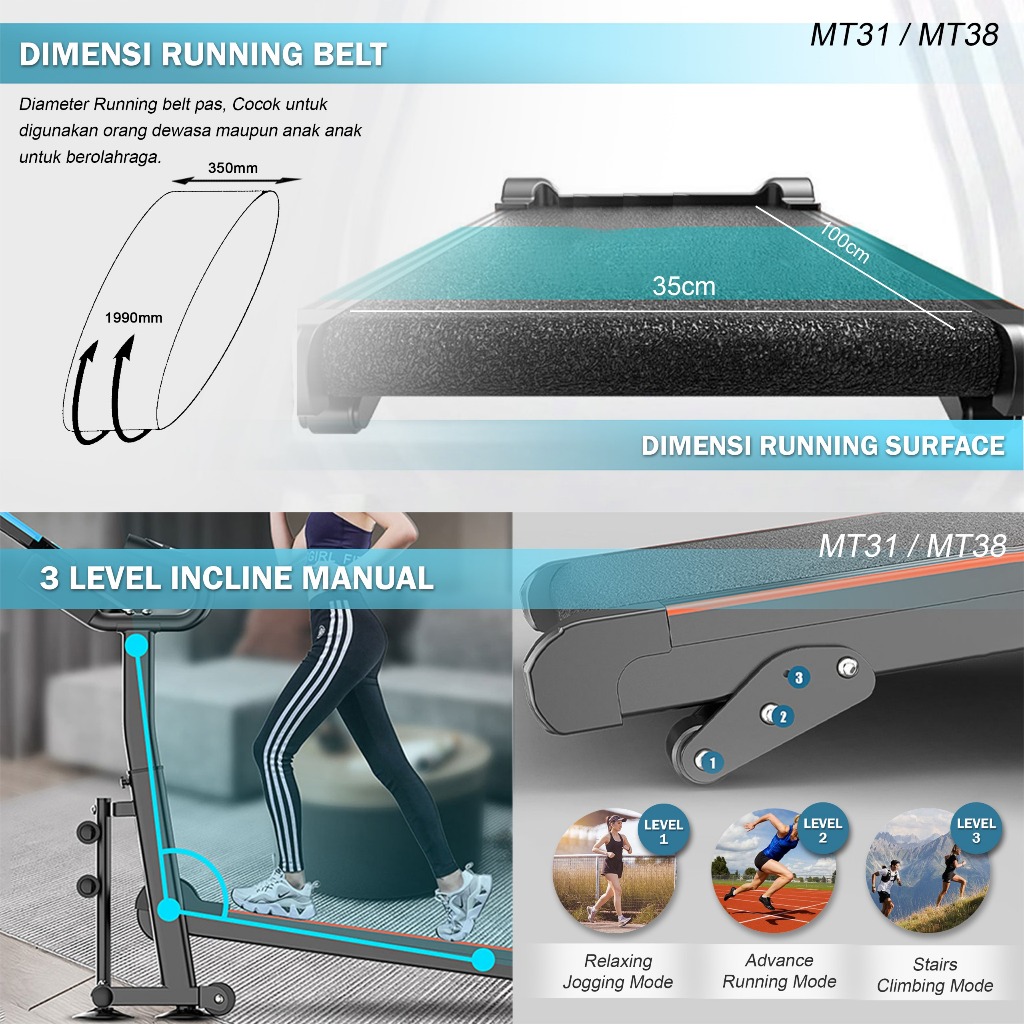 TWEN MT21 MT28 MT31 MT38 Treadmill Tanpa Listrik Treadmill Manual Treadmill Multifungsi Treadmill Lipat Alat Olahraga
