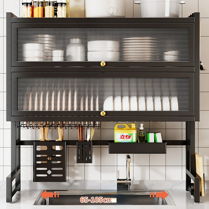 Rak Piring Wastafel 2 Lapis Anti Debu dengan Penutup & Tatakan Anti Bocor/F62