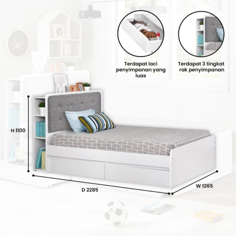Mobeliving - Rangka Ranjang ECLIPSE White Ukuran 120 Minimalis