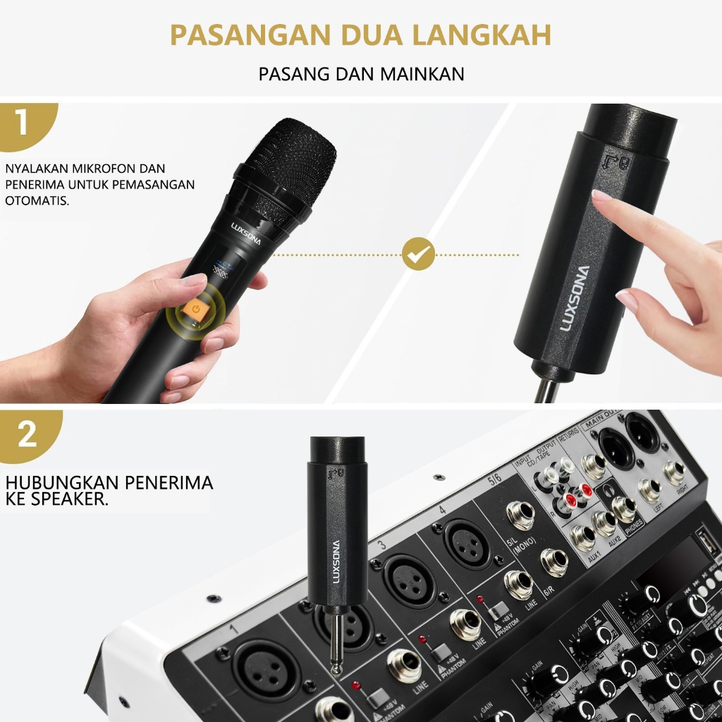 Power Amplifier 2×150W penguat daya saluran ganda+4channel Mixer Audio+2 UHF wireless Mikrofon