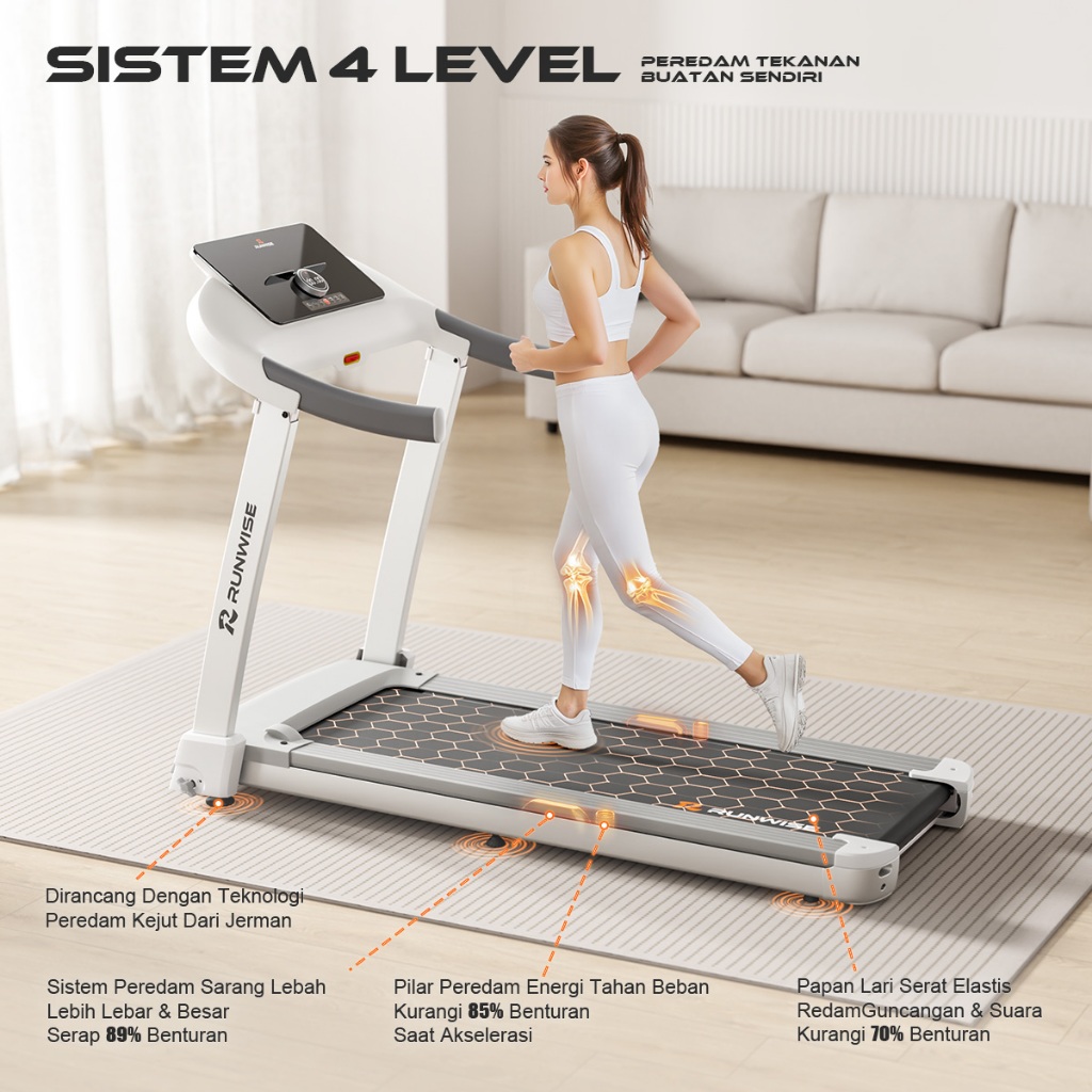 RUNWISE Treadmill Portable Premium 10X Brushless Motor - Alat Fitness Rumahan 3 in 1 (Walking/Jogging/Running)