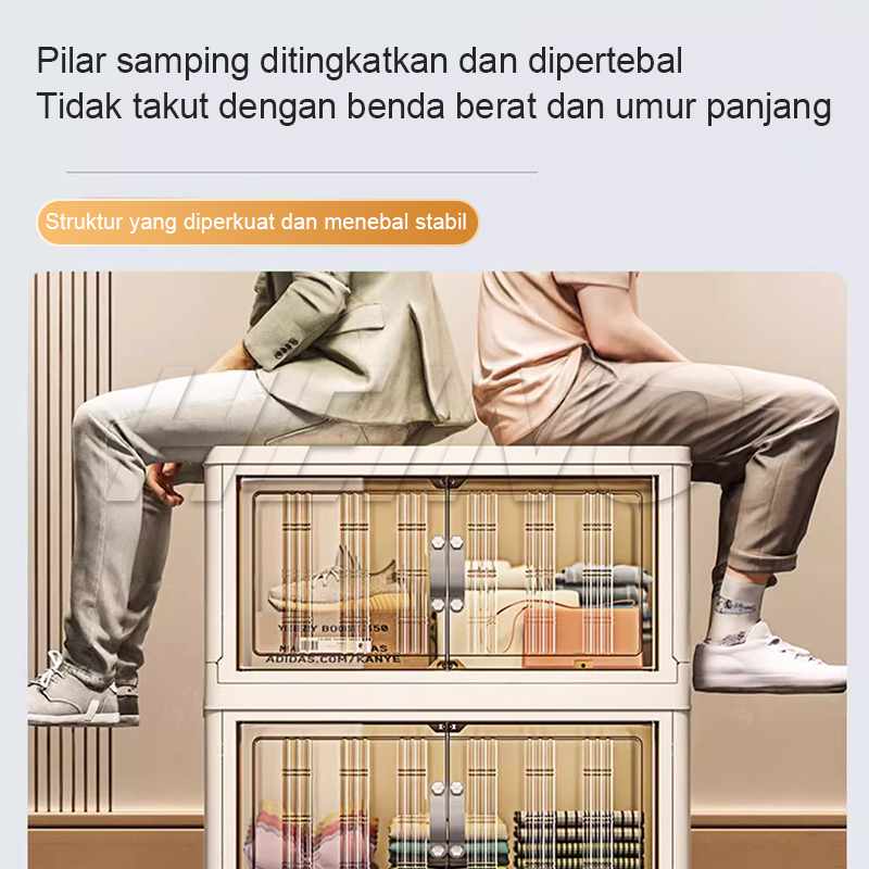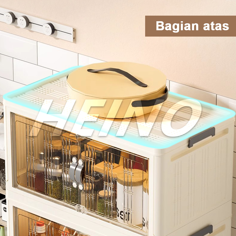 HEINO 50/60/70/80CM Lemari Penyimpanan Super Hemat Biaya Kotak Plastik Penyimpanan Multi-layer Dengan Roda Pintu Lemari Pakaian Plastik