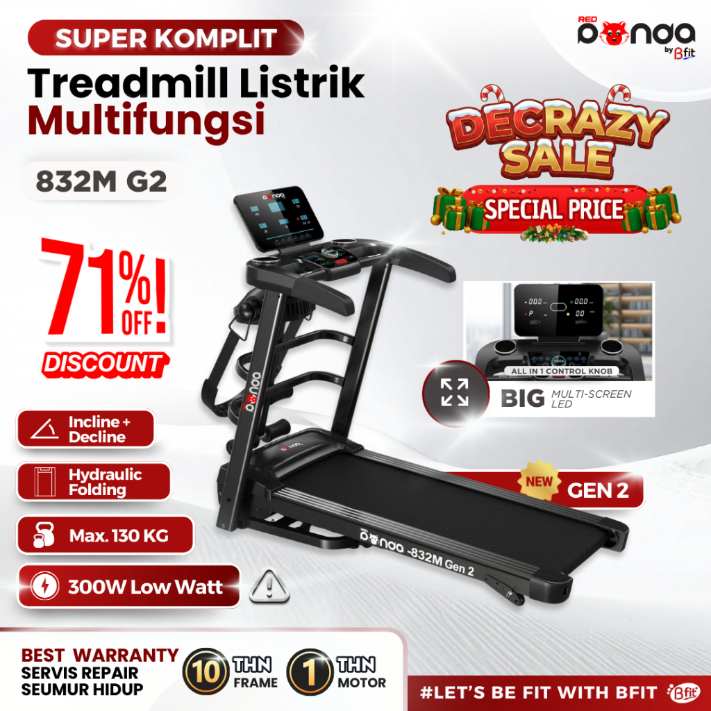 Treadmill Elektrik REDPANDA 832M Multifungsi Listrik Lipat Portable Low Watt Fitness Gym